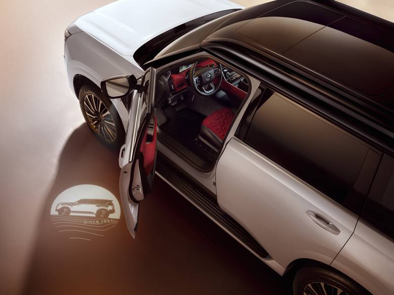 Nissan’s commitment to thoughtful design is evident with the introduction of a Puddle Lamp, which auto-activates individual lighting elements as the occupants approach the vehicle with the key fob or unlock the doors. The lamp illuminates a motif featuring the iconic Nissan Patrol silhouette and the text “Since 1951” signifying the SUV’s production history. This feature is a nod to the Japanese principle of omotenashi, or thoughtful hospitality, ensuring that every interaction with the Patrol feels special and welcoming.